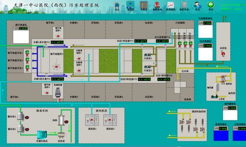 我公司负责该项目的电气自控系统的供货、设计、调试、售后工作。该项目共200点左右,主要是负责医院的工业及生活污水的处理及排放。 该项目特点是设备分散,主机房在地下室,地上还有一些现场设备及其他设备机房,都需要接入到主机房。主要连接方式为电缆、网线或光纤。地下室设立了一个中控室,中控室内设计了一台上位机以及大尺寸电视,用于现场项目的管理及展示。该项目的数据,也通过局域网,传送给了一中心医院内部的数据平台。并且通过网关,上传到了甲方的云平台。