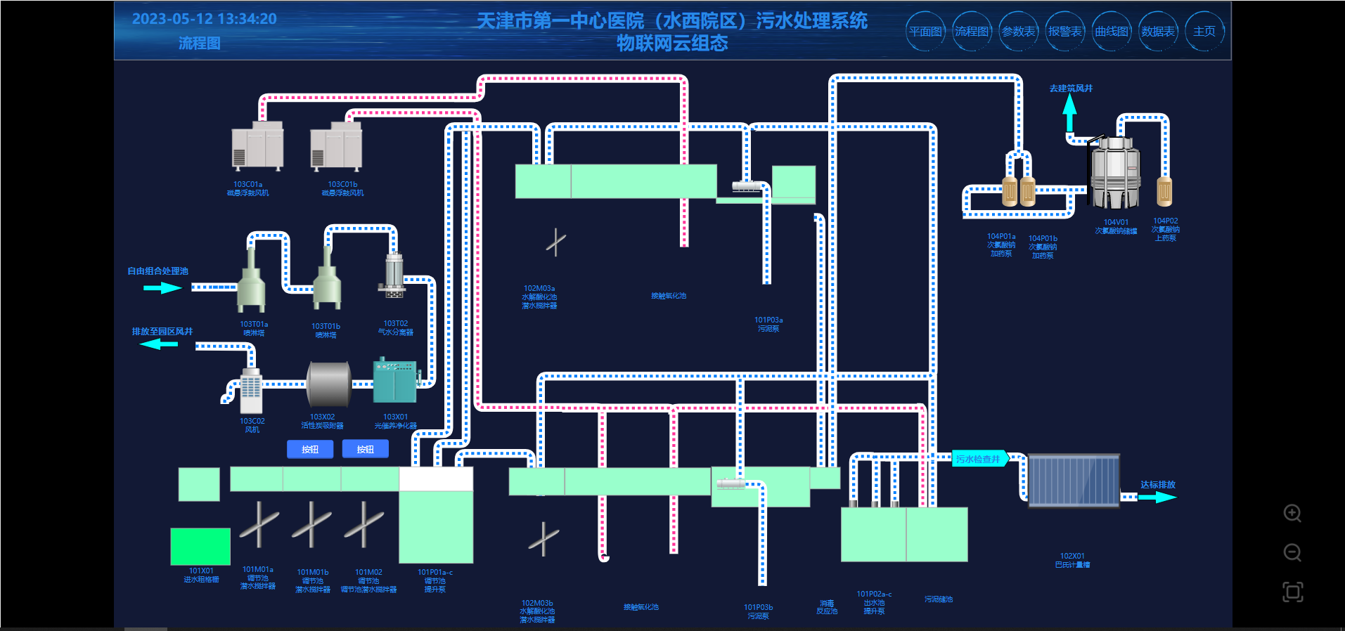 天津一中心医院(西院)污水处理系统云平台